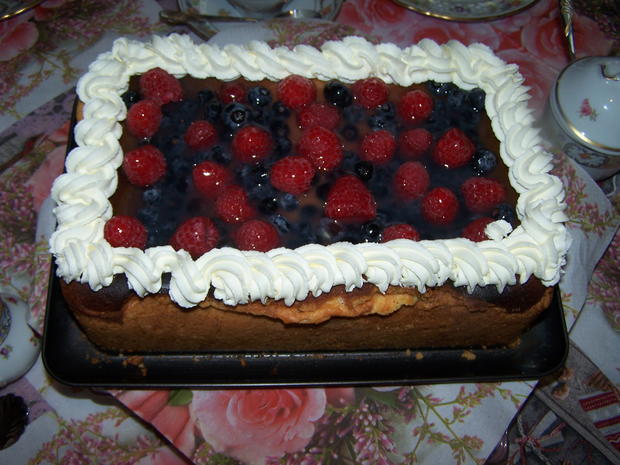 Quark mascarpone kuchen mit himbeeren.